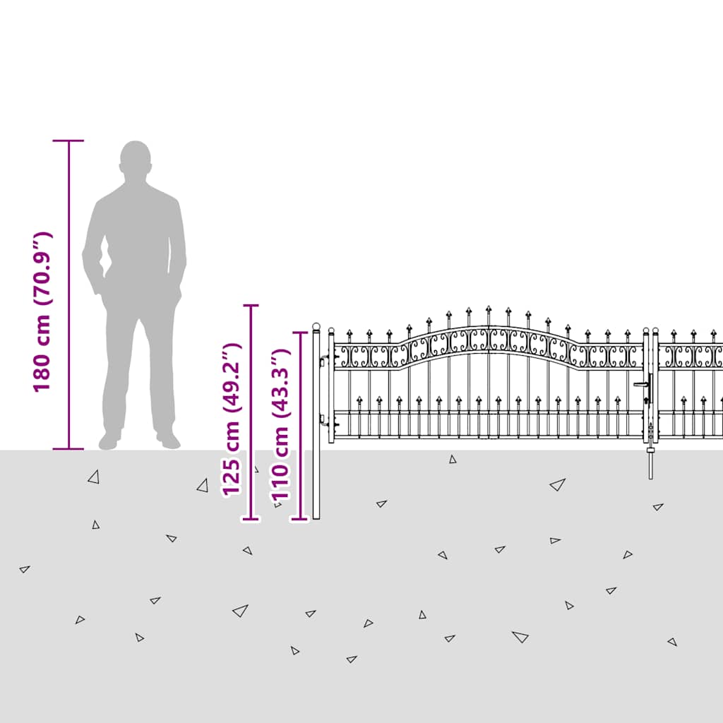 - Design de înaltă securitate: Poarta metalică oferă un grad înalt de securitate cu designul superior arcuit și elegant și stâlpii orizontali puternici, pentru a întări cadrul, formând în același timp o intrare uimitoare pentru proprietatea dumneavoastră.