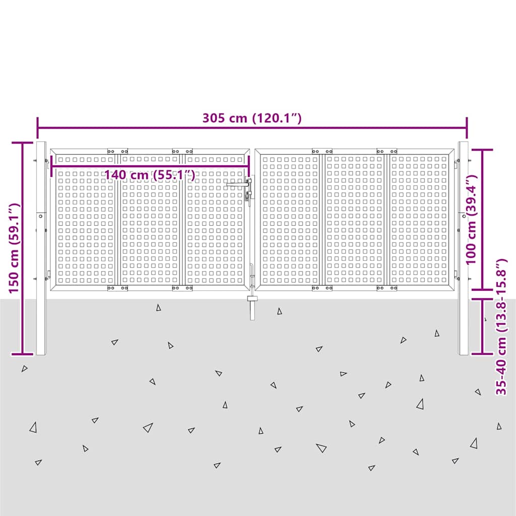 Poartă de grădină antracit 300x100 cm oțel GartenMobel Dekor
