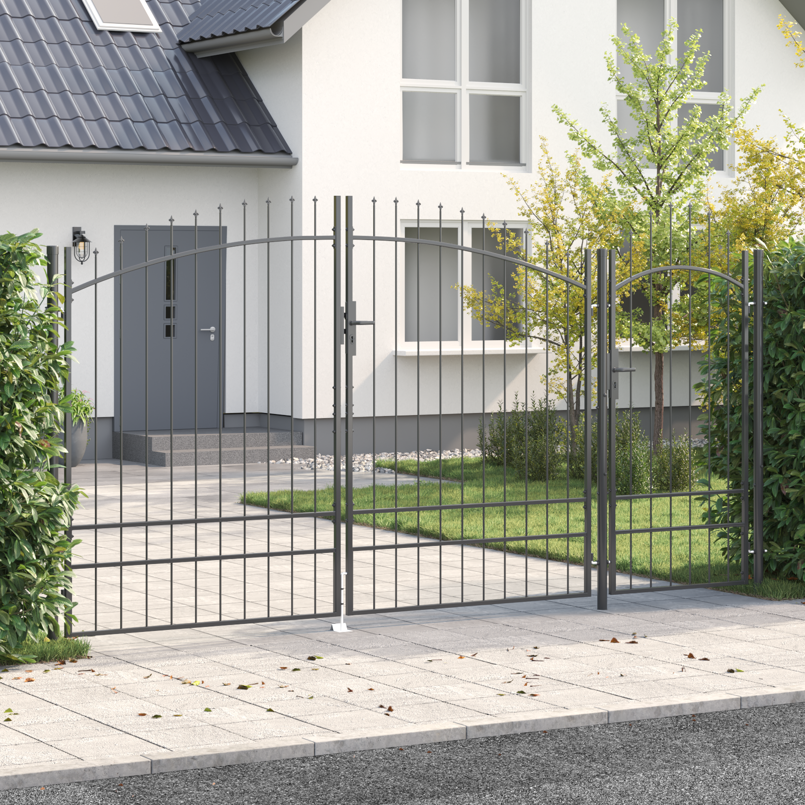 Poartă de grădină cu vârf de lance gri 195x400 cm din oțel GartenMobel Dekor