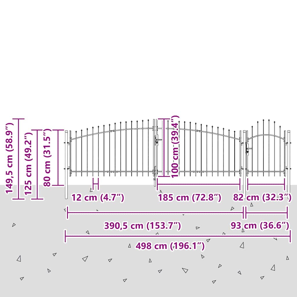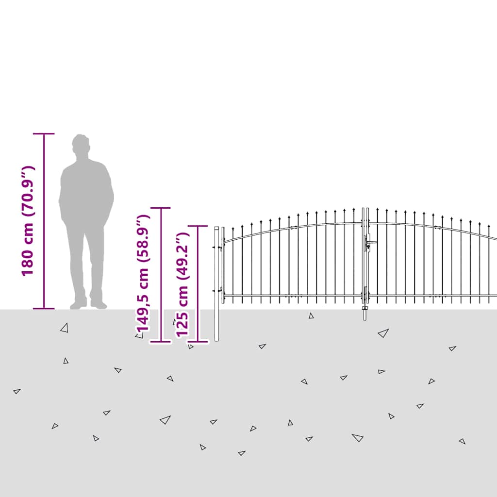 Poarta de grădină cu vârf în formă de suliță, gri, 100x500 cm, din oțel GartenMobel Dekor