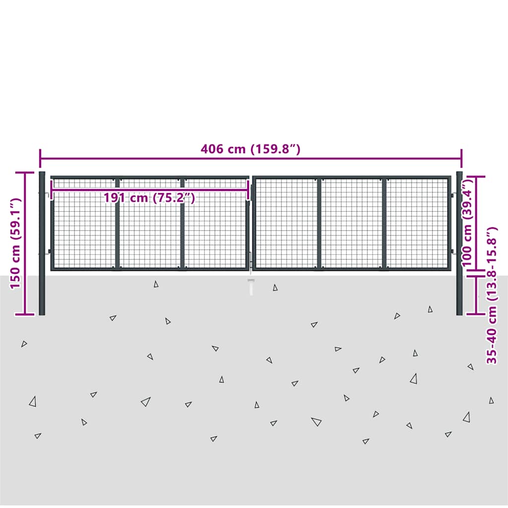 Poartă de grădină din plasă, oțel galvanizat, gri, 400x100 cm GartenMobel Dekor