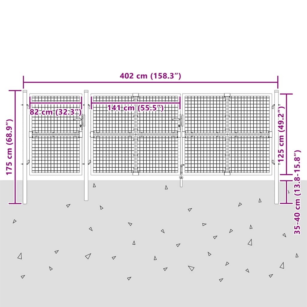 Poartă de grădină din plasă, verde, 400x125 cm, oțel galvanizat GartenMobel Dekor