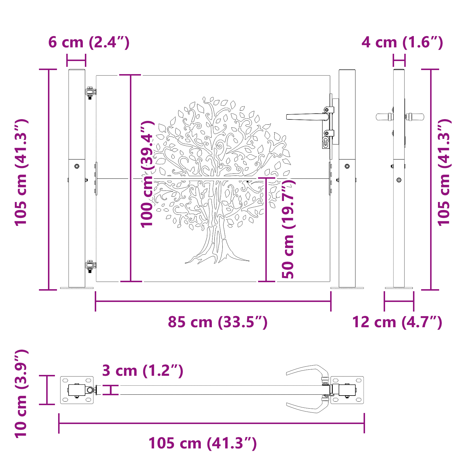 Poartă de grădină Negru 105 x 100 cm Oțel vopsit în pulbere GartenMobel Dekor