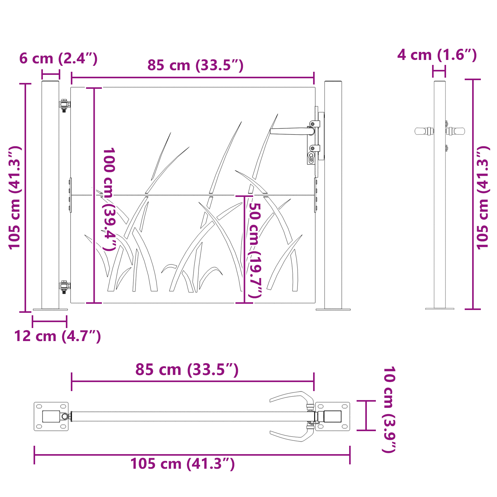 Descriere Poartă grădină Negru 105 x 100