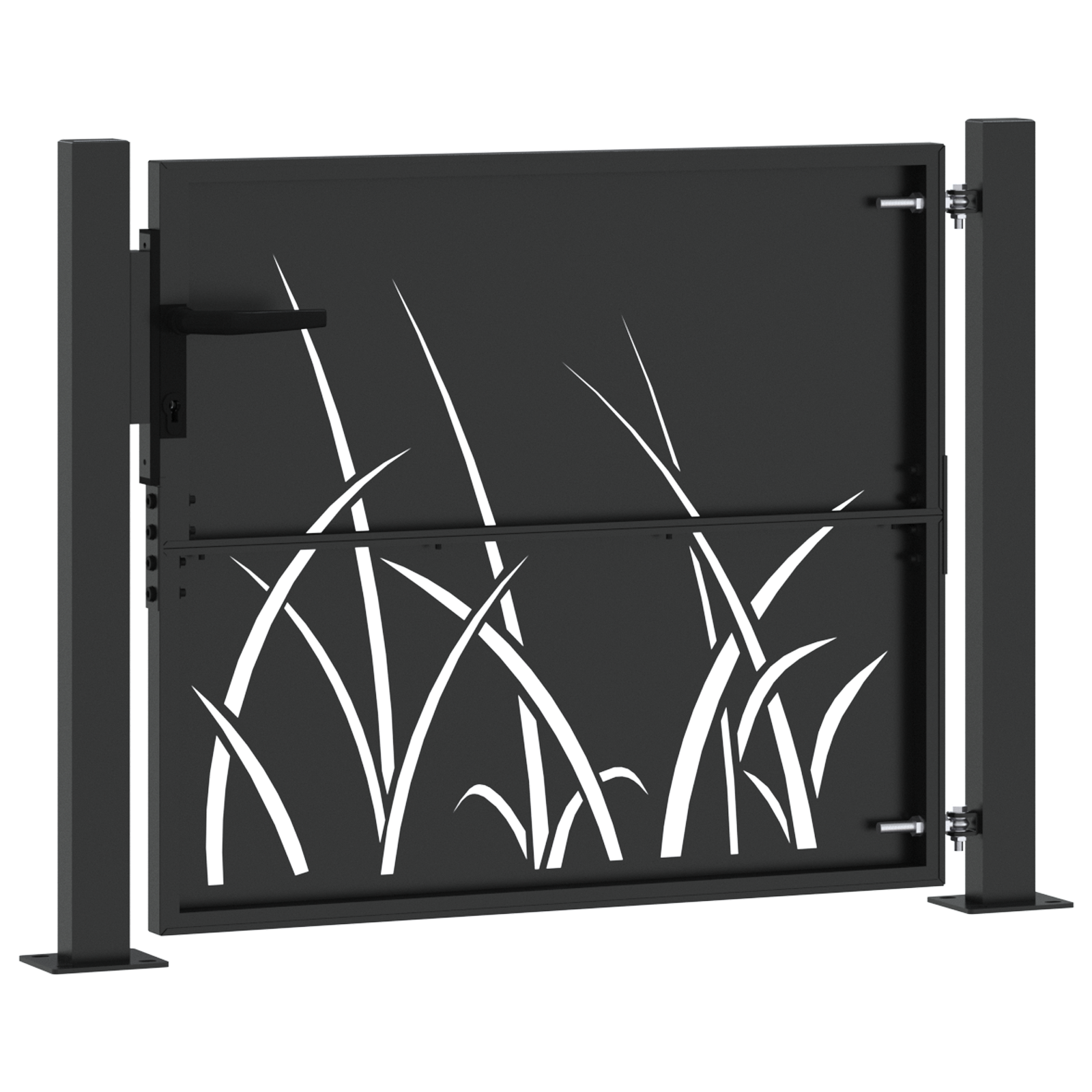 - Materii prime: Poarta e cu măiestrie din oțel vopsit electrostatic, ales pentru puterea și rezistența lui la vreme. Finisajul neted asigură că rămâne frumoasă și practică, chiar și în fața vremii.