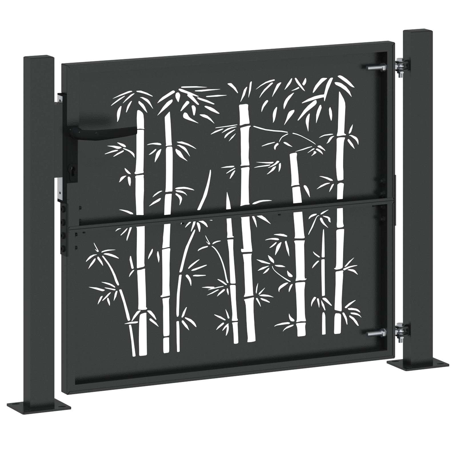 Dacă cauți o poartă de grădină care să arate modern și să fie practică, ai găsit-o! E perfectă pentru grădini și terase. Forma ei rectangulară și modelul trendy cu tăieturi laser pe bambus îi dă un aspect elegant și contemporan, integrându-se ușor în orice design. Fie că vrei să îmbunătățești intrarea din grădină sau să-ți creezi un loc special în exterior, poarta asta îndeplinește ambele sarcini, arătând bine și protejându-te în același timp.