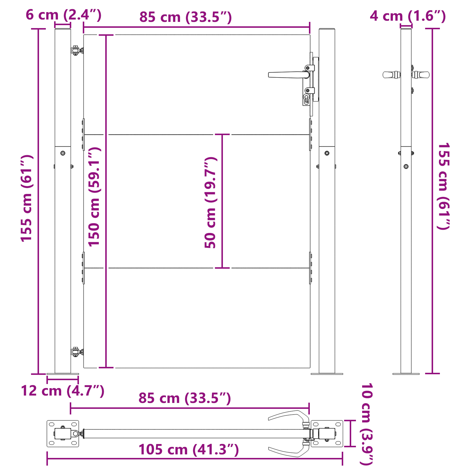 Poartă de grădină Negru 105 x 150 cm Oțel vopsit în pulbere GartenMobel Dekor