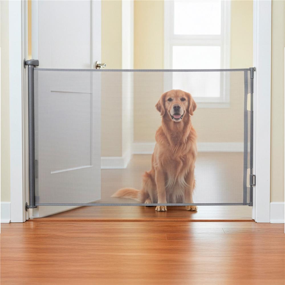 Poarta de siguranta retractabila si extensibila, pentru copii sau animale de companie, 162x86 cm, gri Household NewTrend