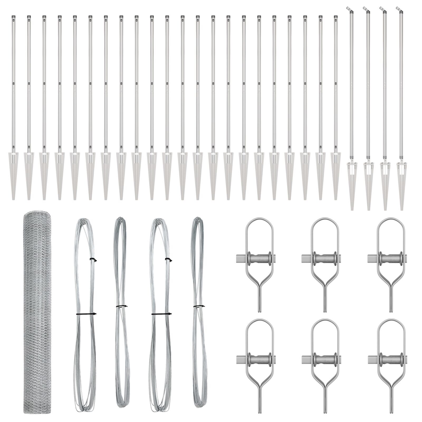 Poarta hexagonală 1.2x50 m din oțel galvanizat, Stâlpi cu țărușe 13 buc Ø32 mm 140 cm din oțel galvanizat GartenMobel Dekor