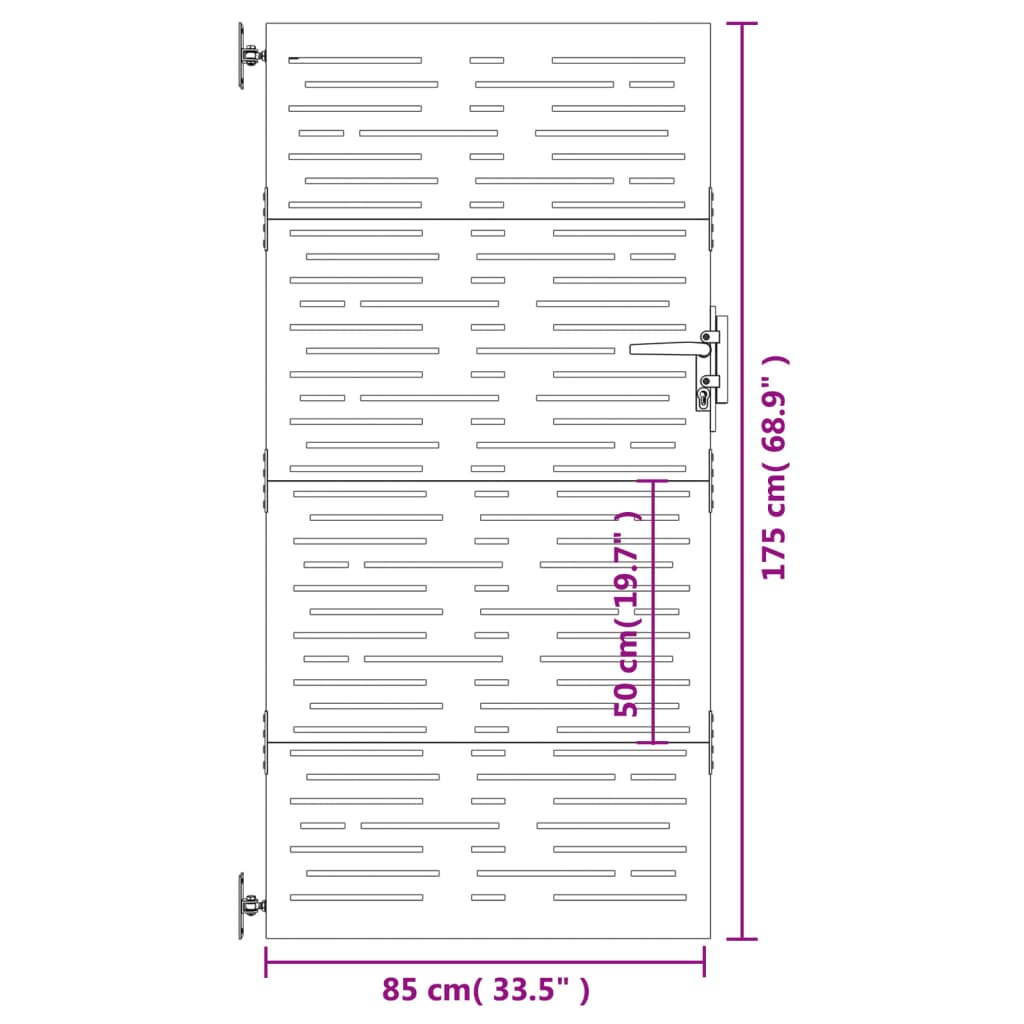 Poartă pentru grădină, 85x175 cm, oțel corten, dreptunghiuri GartenMobel Dekor