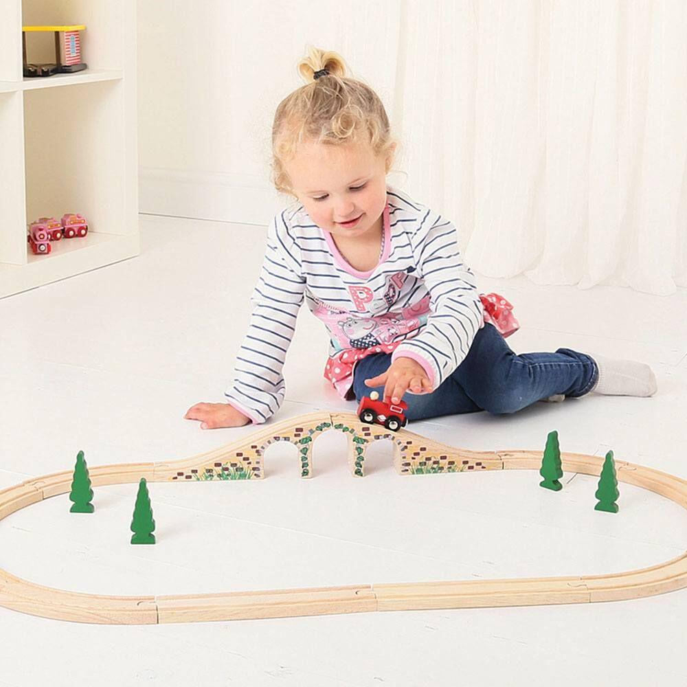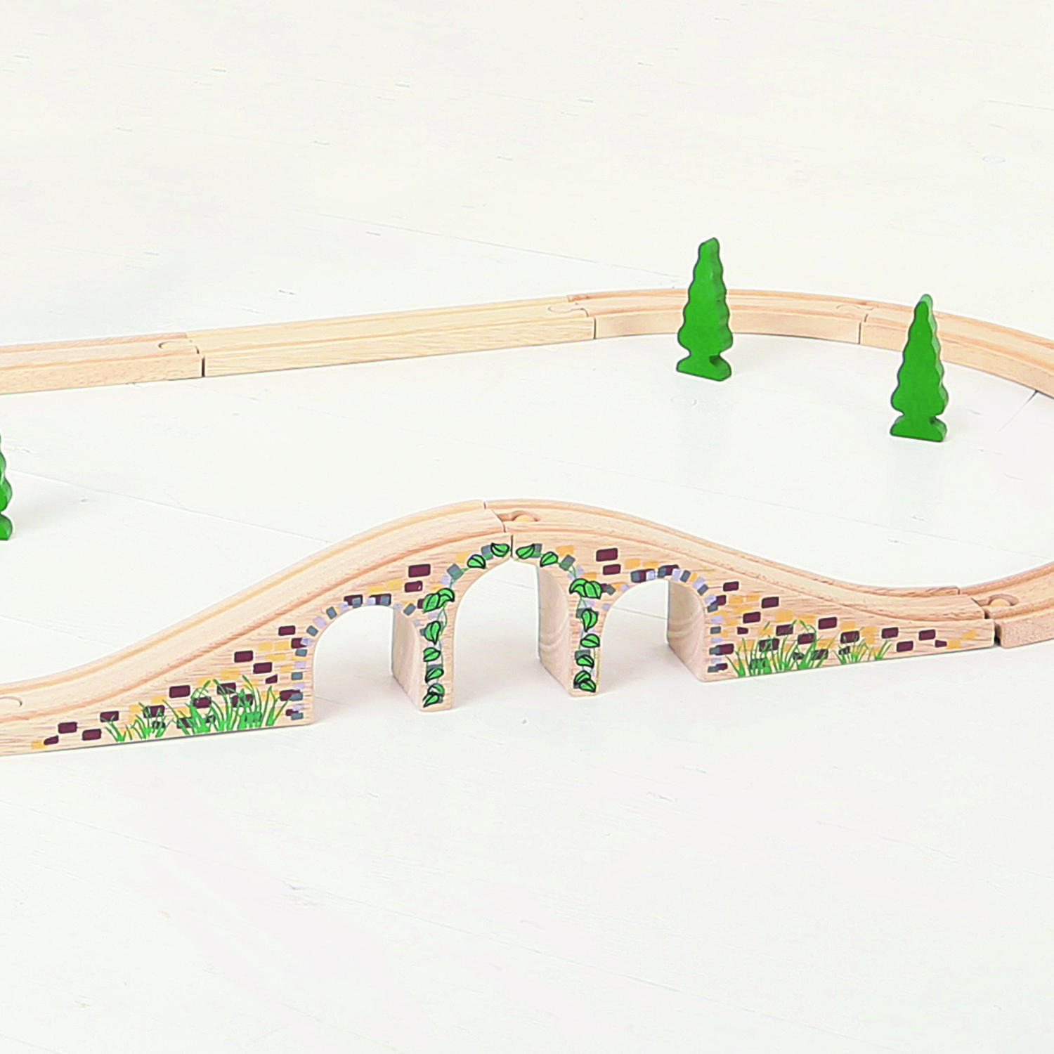 Transforma orice traseu intr-o aventura captivanta cu acest pod cu arcade din lemn, perfect pentru micii pasionati de trenulete. Realizat din lemn rezistent, cu finisaje de calitate si detalii decorative inspirate din piatra, podul adauga realism jocului si ofera mai multe posibilitati de traseu: trecere pe deasupra sau pe dedesubt. Este un accesoriu excelent pentru completarea unui set de tren din lemn, stimuland imaginatia, creativitatea si jocul de rol.