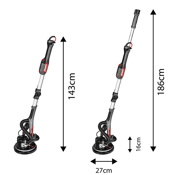 - Slefuitor pentru pereti de gips 800W, 215mm, de inalta calitate, cu maner telescopic cu picioare rotunde si triunghiulare interschimbabile. Slefuitorul are o putere de 800 wati si o turatie a capului reglabila continuu, variind de la 800 la 1800 rpm. Discul polizorului are un diametru de 215 mm.