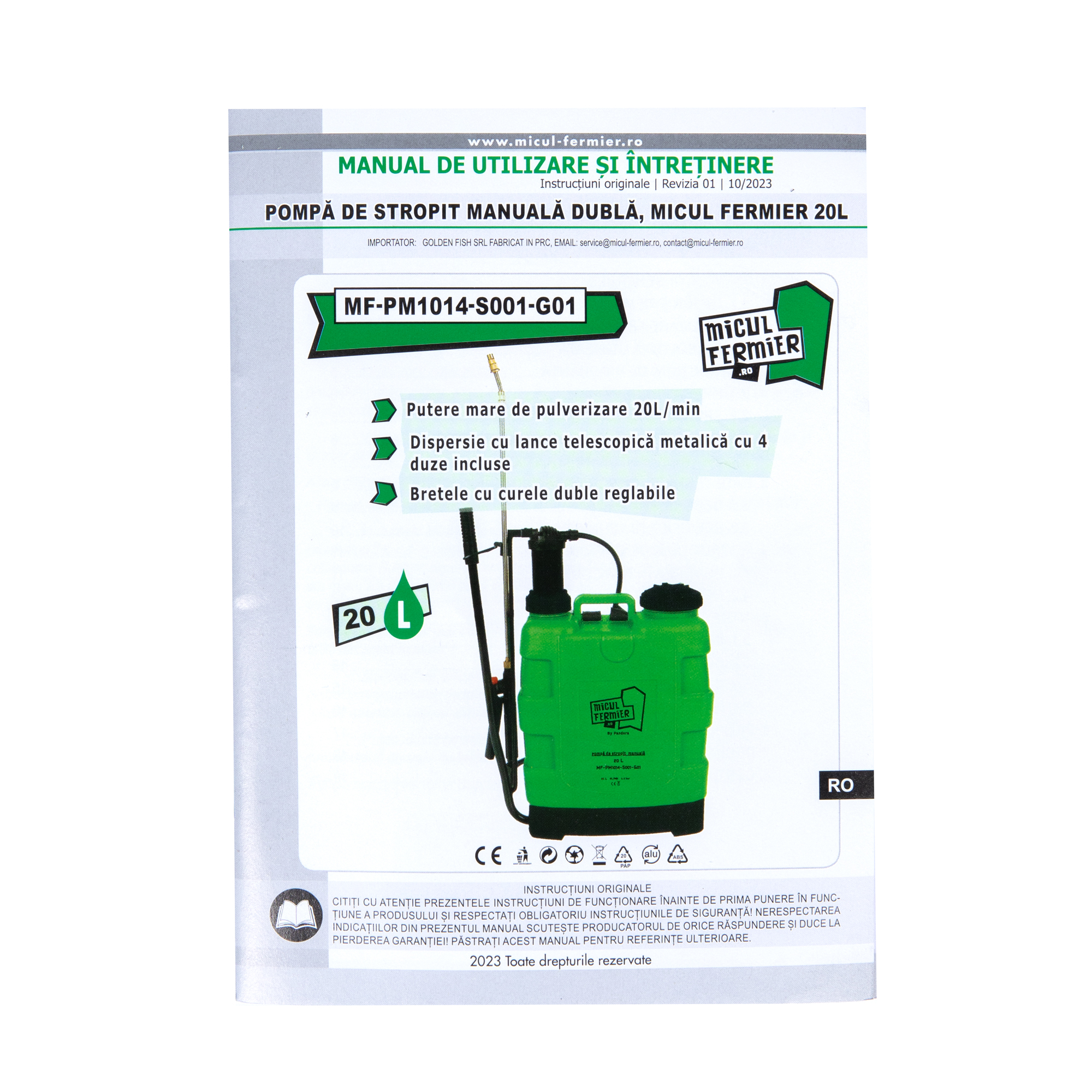 Specificatii Pompa stropit manuala, MF Pandora 20L