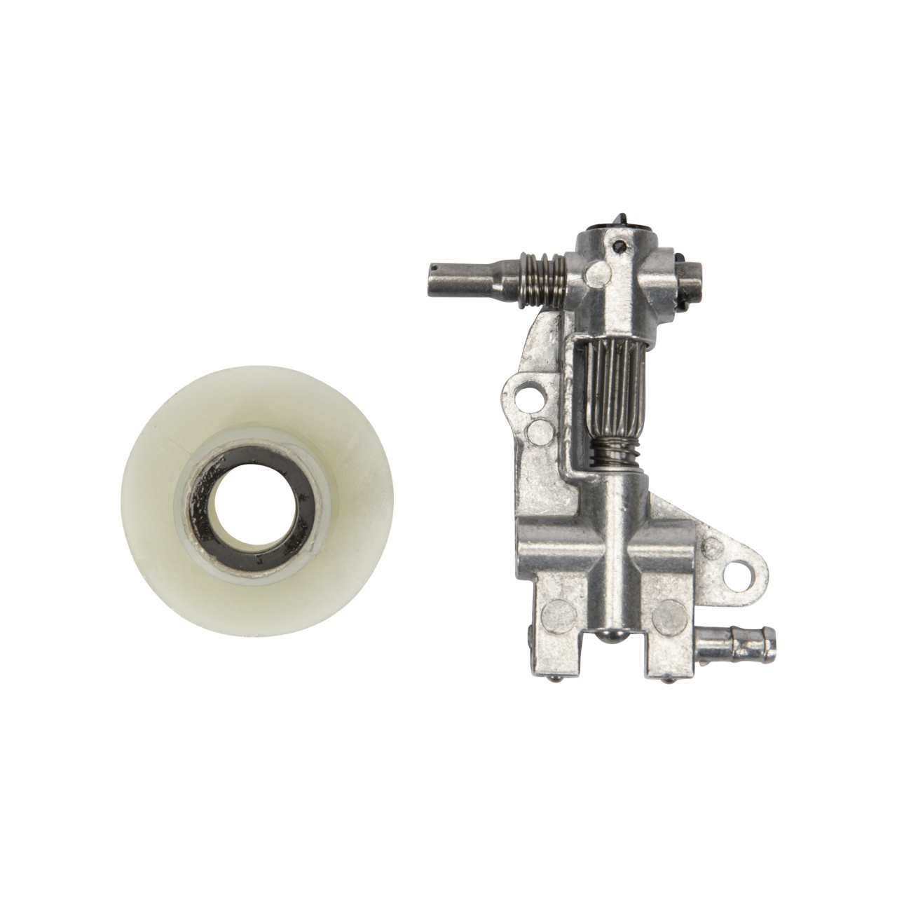 Utilizare / montaj: se montează în ansamblul de ungere al drujbei, împreună cu melcul de antrenare. Pentru rezultate bune, curăță canalele de ungere și verifică filtrul și conductele de ulei înainte de montaj.