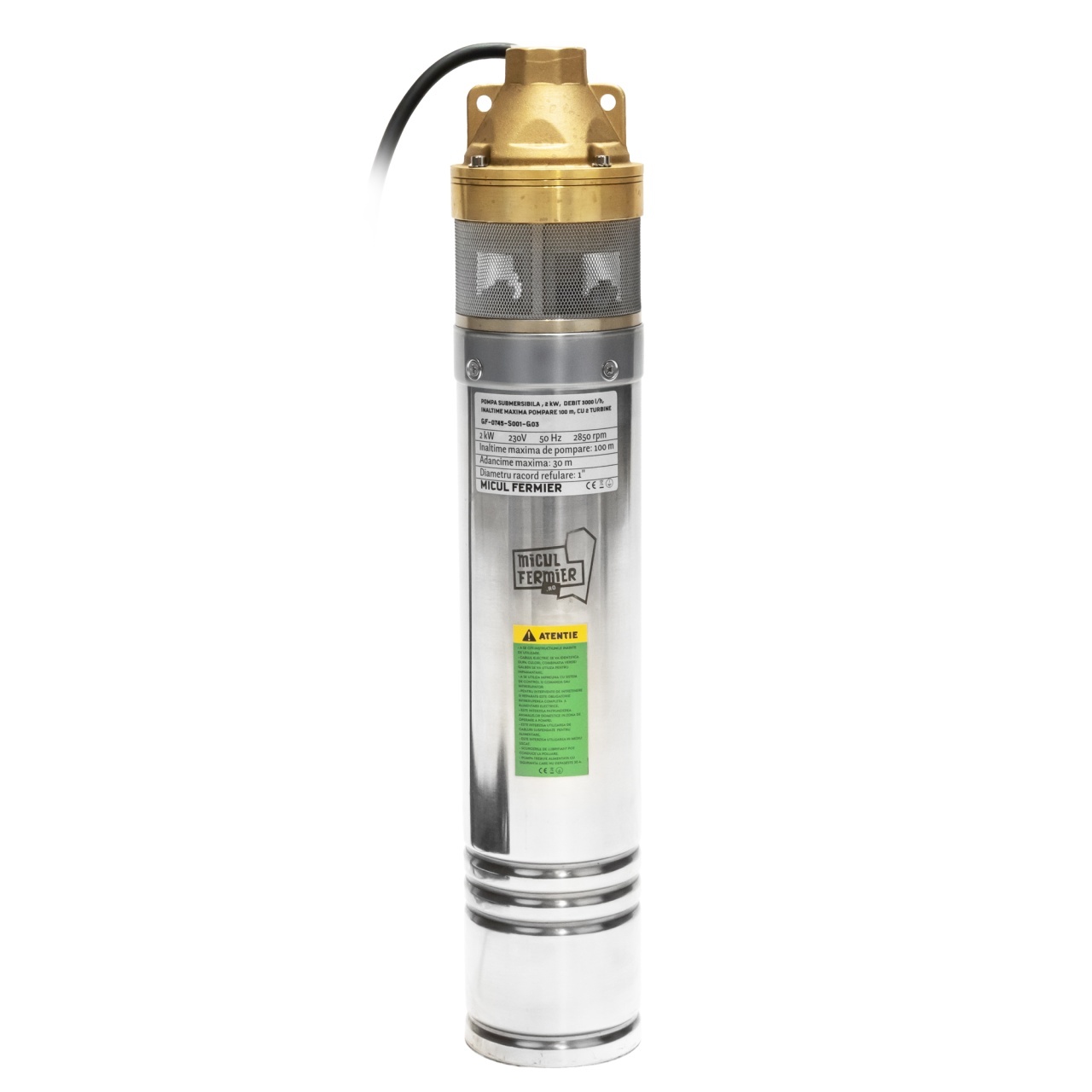 Pompă submersibilă Micul Fermier 2 kW, 3000 l/h, 100 m, 2 turbine, cu panou comandă