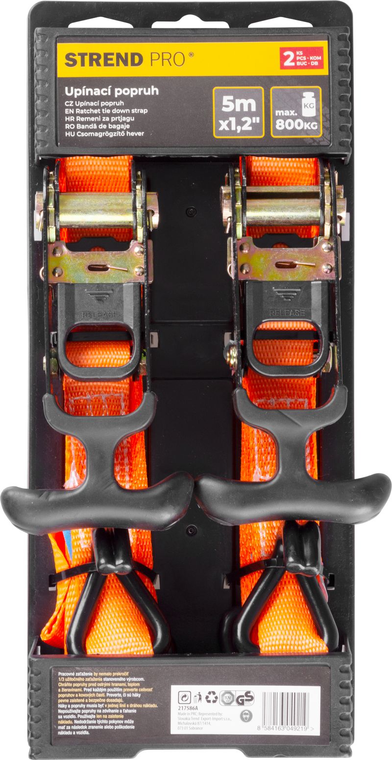 Popruh upínací Strend Pro, pás s račňou, 30 mm, L-5 m, max. 800 kg, bal. 2 ks