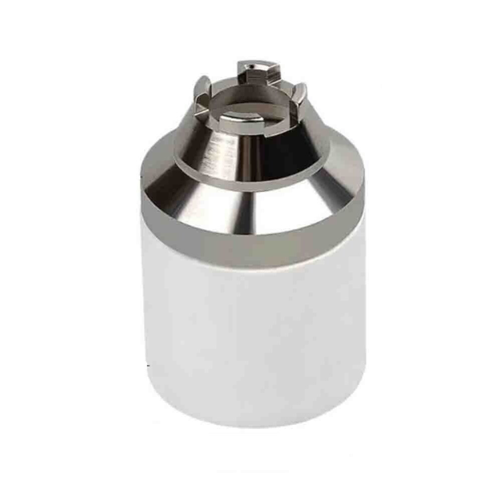 Portduza ceramică P80 este un accesoriu esențial pentru funcționarea corectă a unui pistol de tăiere cu plasmă. Realizată din material ceramic, aceasta contribuie la protejarea componentelor frontale ale pistoletului și la menținerea unei utilizări stabile în timpul operațiunilor de debitare.