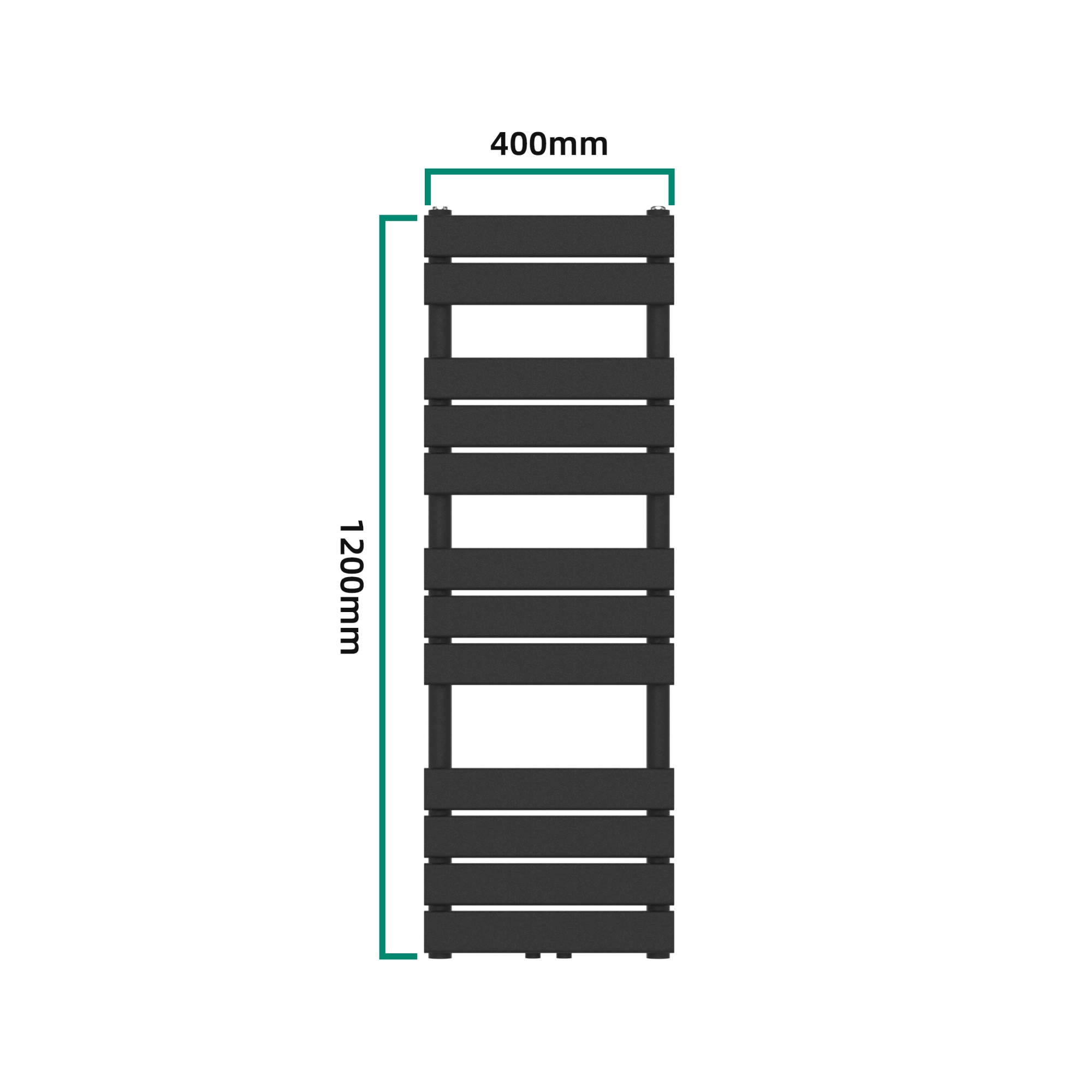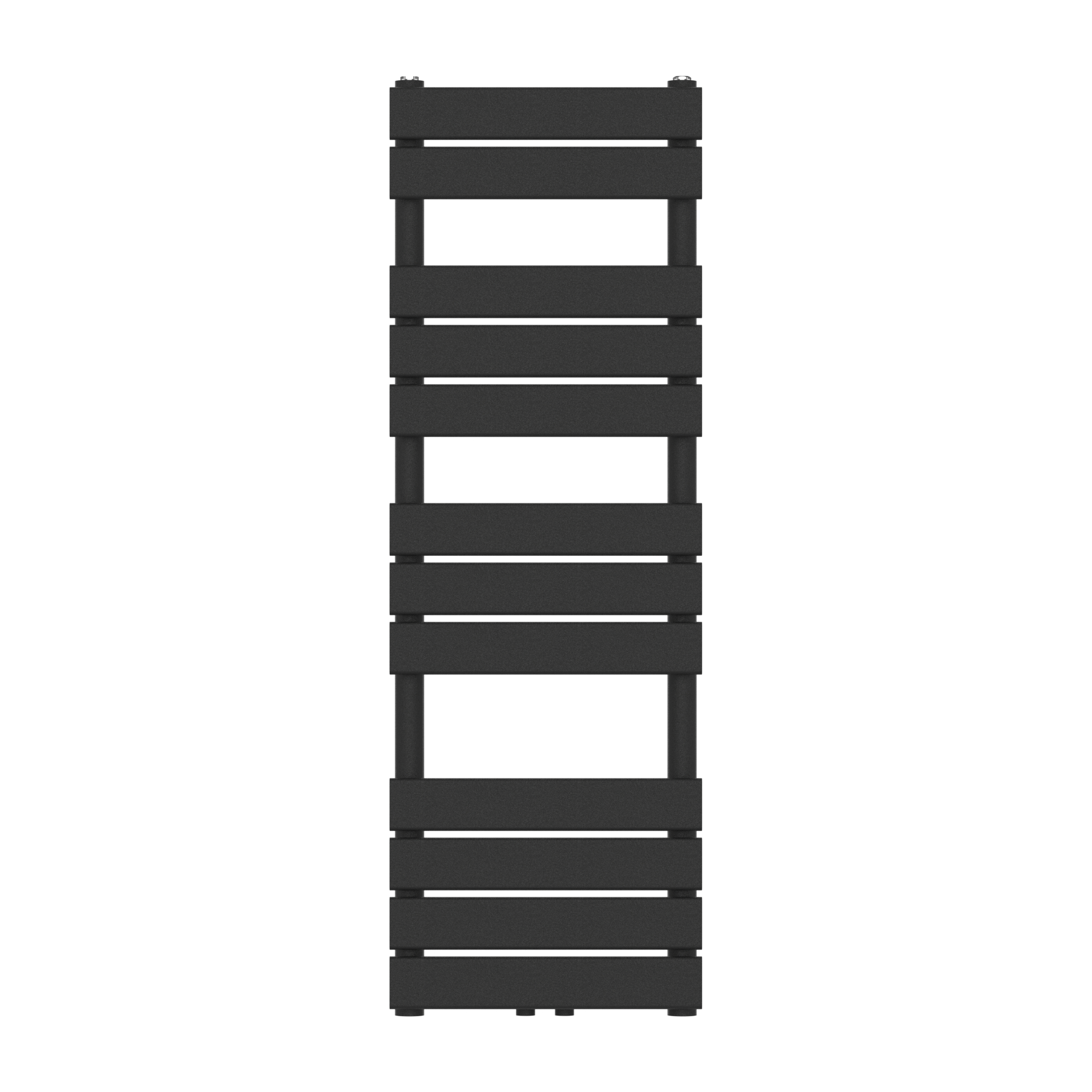 Construit din oțel rezistent și prevăzut cu 12 lamele, acest radiator baie cu apă caldă oferă o putere de încălzire de 528 W și o utilizare fiabilă pe termen lung. Finisajul negru mat RAL9005 adaugă un aer elegant și contemporan, fiind ușor de asortat cu obiecte sanitare și accesorii în tonuri închise.