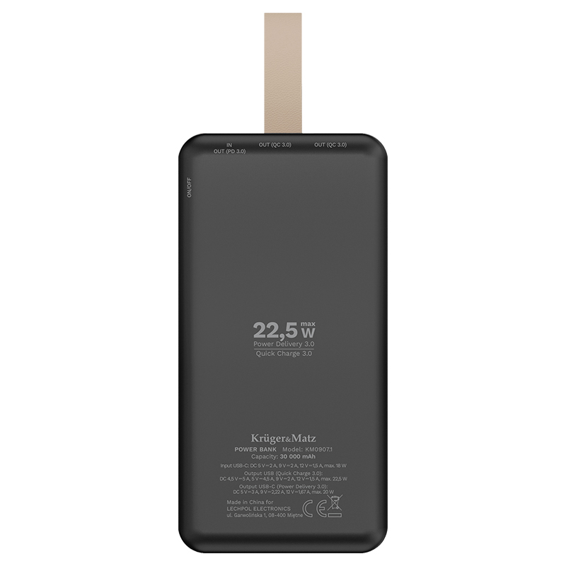 Specificatii POWER BANK 30000MAH LI-POL KRUGER&MATZ