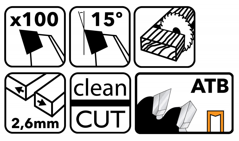 Lama POWERMAT este concepută pentru tăierea precisă a lemnului și a tuturor materialelor asemănătoare lemnului, inclusiv placaj, scânduri, plăci, materiale plastice și materiale moi. Este conceput să se rotească foarte repede, ceea ce garantează o tăiere ușoară și rapidă.