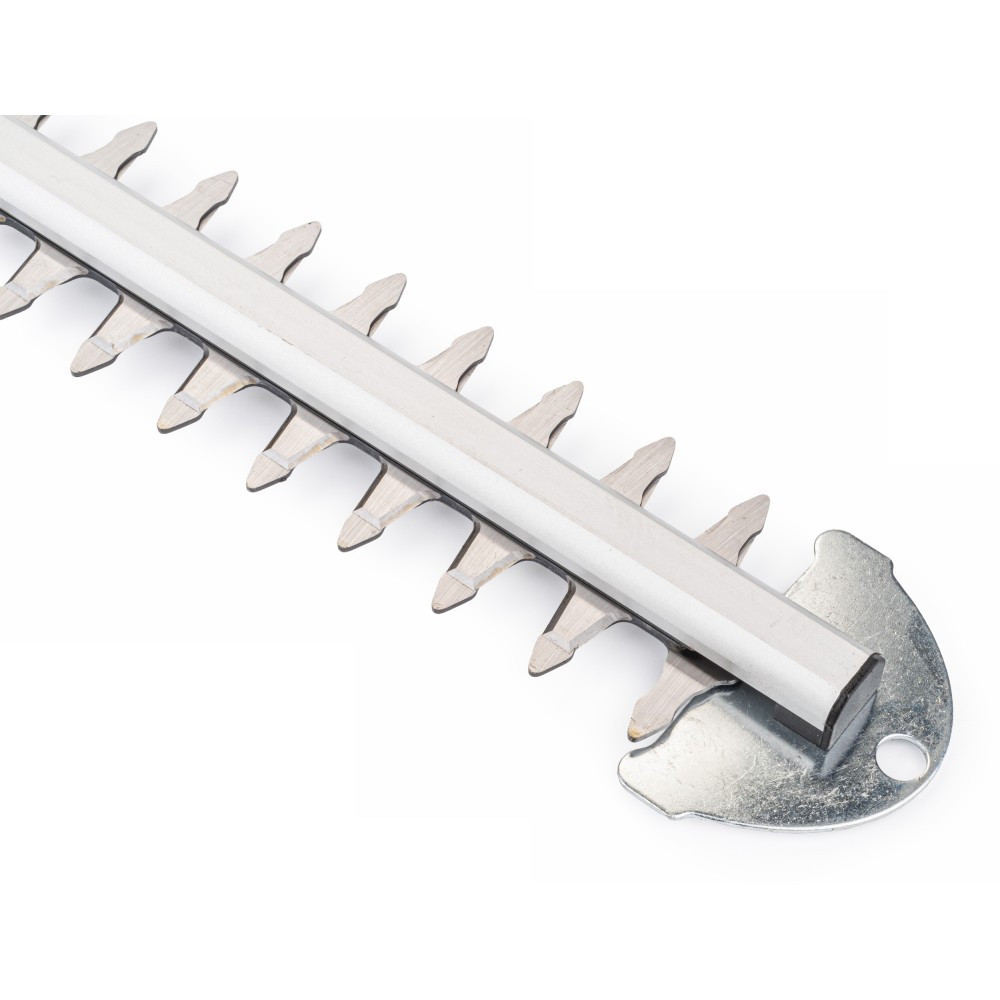 Mașina de tuns gard viu fără fir POWERMAT PM-NAW-20C are o lamă lungă din oțel carbon de înaltă calitate. Motorul electric al bateriei de 20V - 2Ah este potrivit pentru tăierea crengilor de arbuști cu diametrul de până la 16 mm.