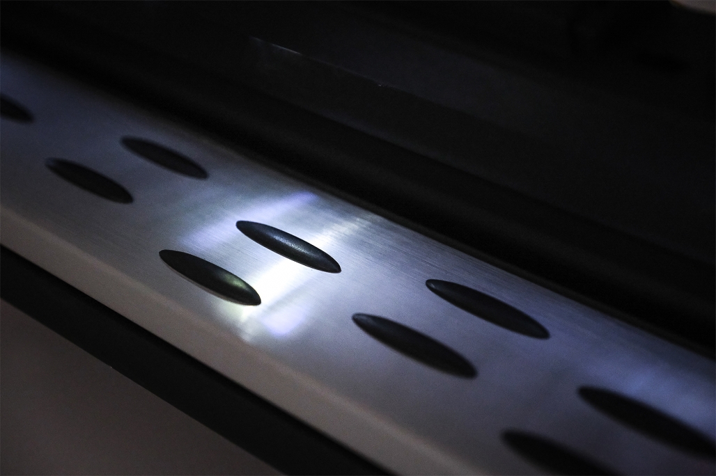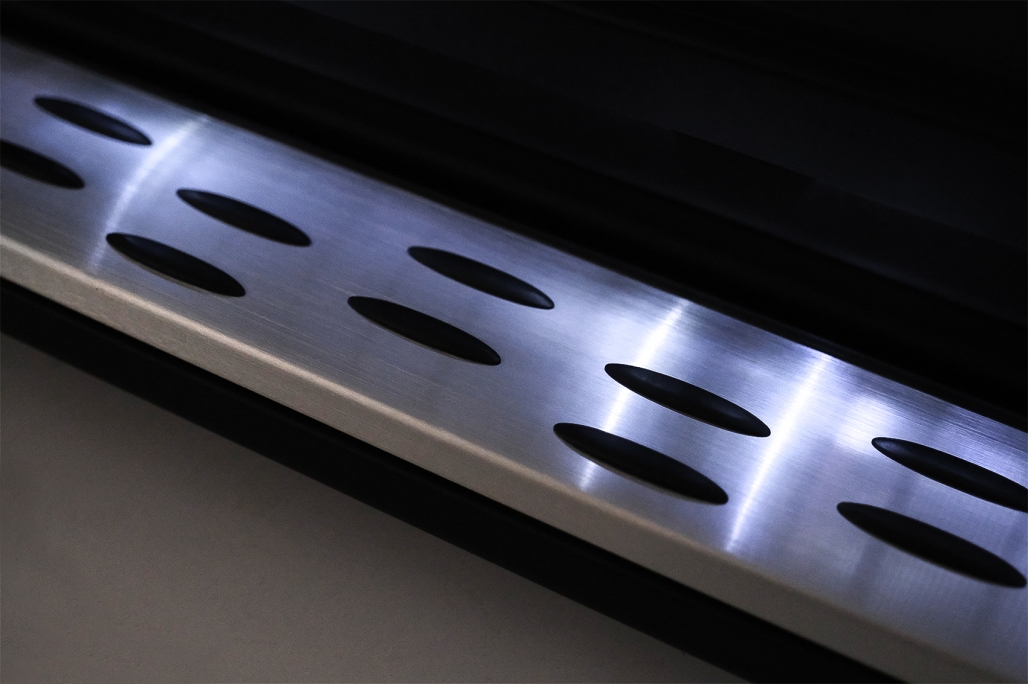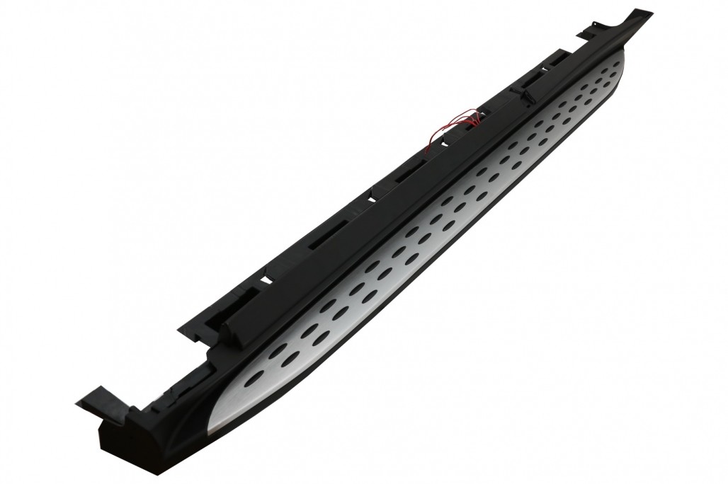 Iluminarea integrata transforma aceste trepte laterale Mercedes GL X166 intr-un accesoriu practic si vizibil pe timp de seara, iar constructia din materiale rezistente contribuie la durabilitate in utilizarea zilnica.
