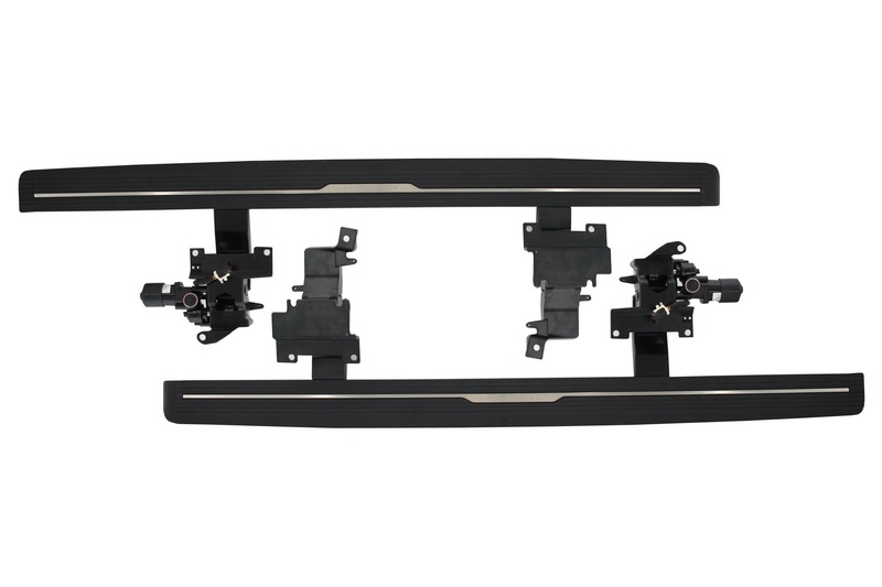 Setul de praguri laterale electrice este conceput pentru a oferi un acces mai comod in masina si un plus de stil pentru modelele Range Rover Vogue L405 si Range Rover Sport L494. La deschiderea usii, pragurile coboara automat pentru a facilita urcarea si coborarea, apoi se retrag discret, pastrand linia eleganta a vehiculului.