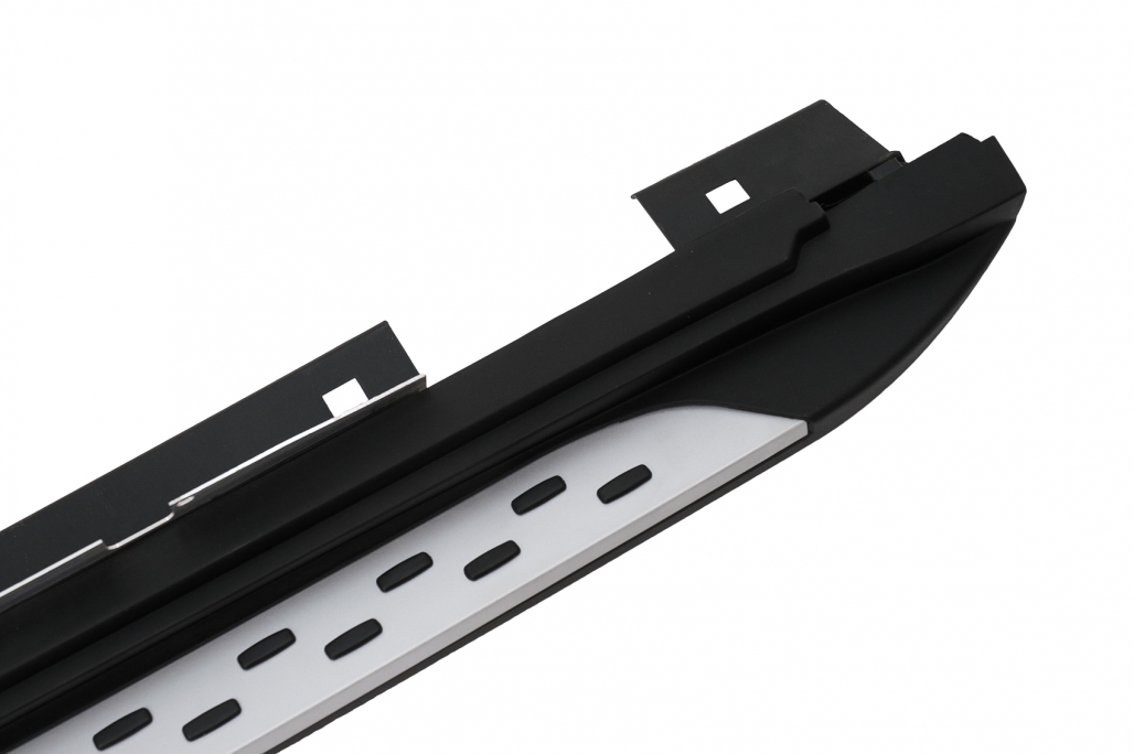 Aceste trepte laterale Mercedes GLA sunt realizate din aluminiu, otel inoxidabil si PVC, materiale alese pentru rezistenta buna in utilizarea de zi cu zi si pentru un aspect placut. Designul cu insertii anti-alunecare contribuie la o urcare si coborare mai confortabila, fiind util mai ales pentru pasageri si la accesul pe timp nefavorabil.