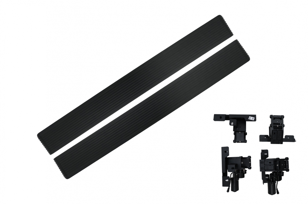 Aceste praguri sunt fabricate din otel inoxidabil, aluminiu si PVC. Pragurile laterale electrice complete echipate cu modul de comanda si motoare. Modulul inclus va cobora pragurile laterale de fiecare data cand se deschide o usa Lungime prag: 120 cm