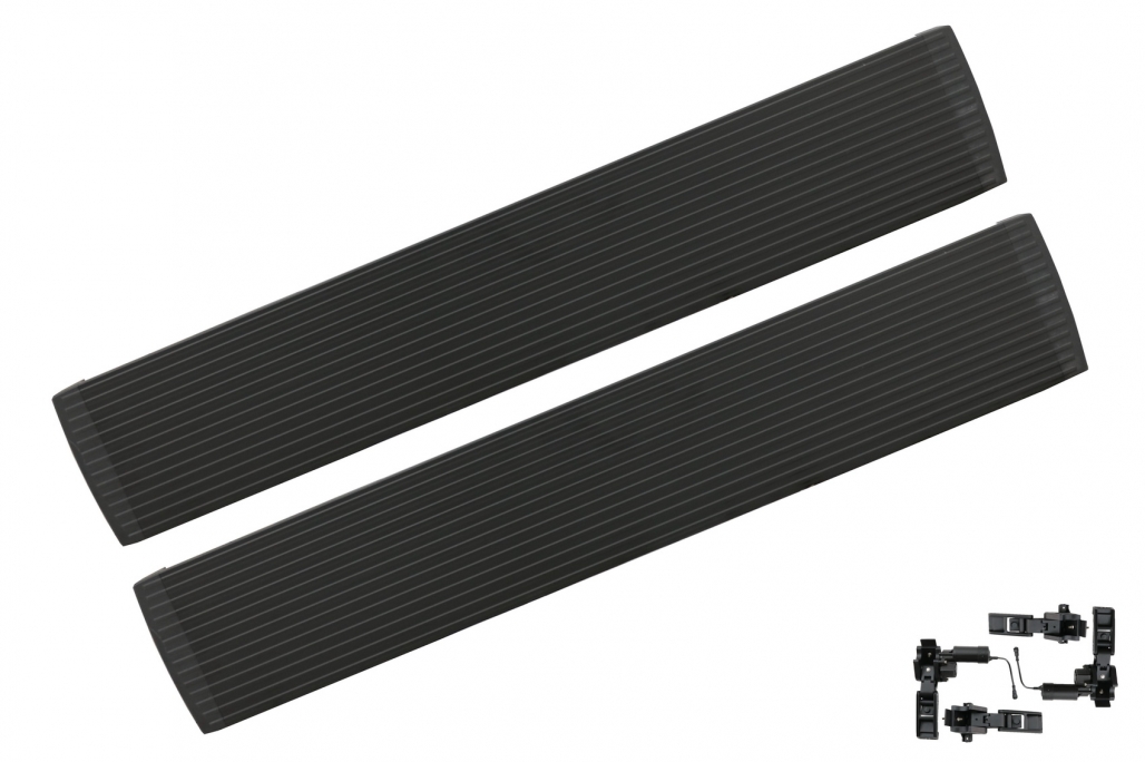Aceste praguri sunt fabricate din otel inoxidabil, aluminiu si PVC. Pragurile laterale electrice complete echipate cu modul de comanda si motoare. Modulul inclus va cobora pragurile laterale de fiecare data cand se deschide o usa