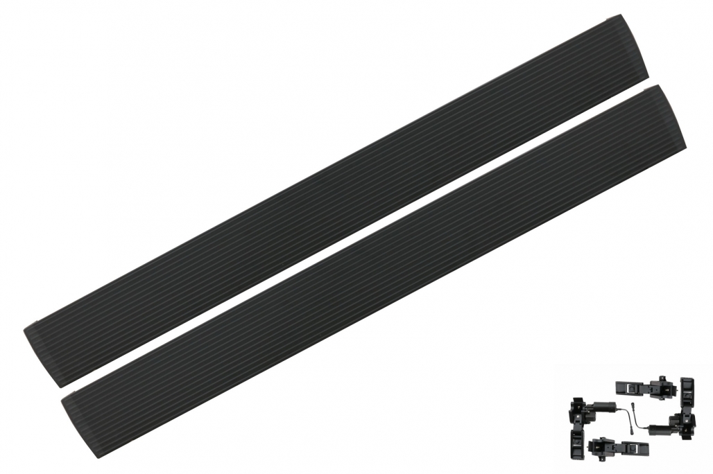 Aceste praguri sunt fabricate din otel inoxidabil, aluminiu si PVC. Pragurile laterale electrice complete echipate cu modul de comanda si motoare. Modulul inclus va cobora pragurile laterale de fiecare data cand se deschide o usa
