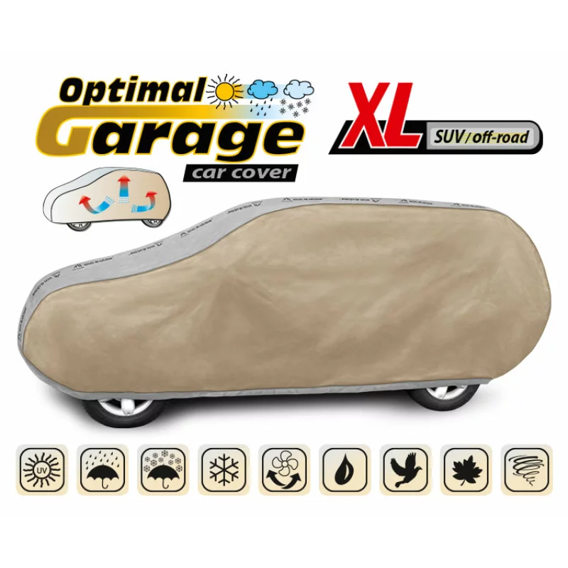 Protejează eficient mașina în orice anotimp cu această prelată auto completă Optimal Garage, concepută special pentru vehicule SUV și Off-Road din gama XL. Materialul impermeabil și rezistent la intemperii apără caroseria împotriva ploii, zăpezii, razelor UV, prafului și murdăriei, iar sistemul microvent ajută la eliminarea umidității din interior pentru o protecție mai bună pe termen lung.