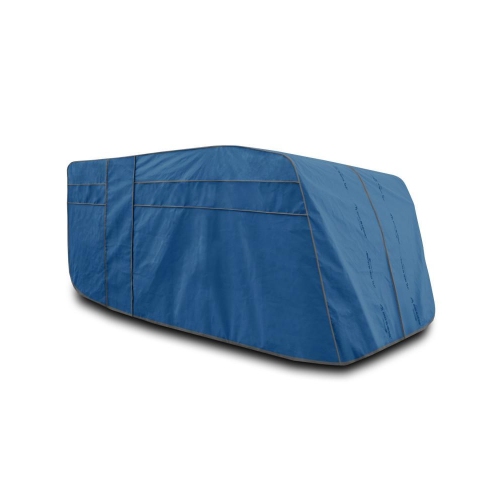 Utilizare: recomandată pentru acoperirea rulotei în perioadele de staționare, iernare sau protecție zilnică în curte, camping ori spații de depozitare exterioare.