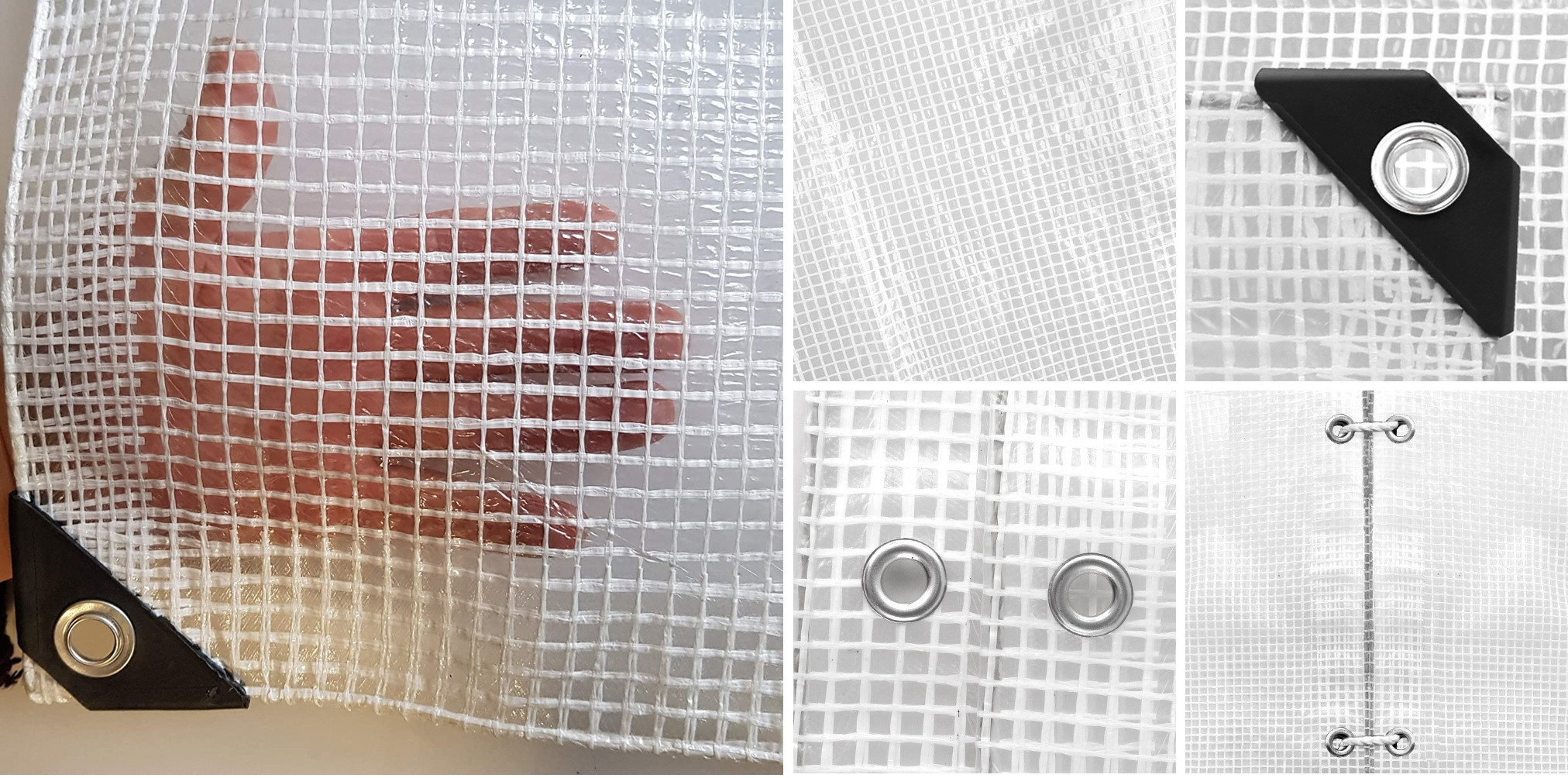Culoarea transparenta permite vizibilitate asupra obiectelor protejate, iar colturile intarite asigura o rezistenta sporita in timp. Ochiurile metalice din otel, cu diametrul de 12 mm, sunt dispuse la fiecare 100 cm pentru o fixare sigura si usoara. Datorita materialului impermeabil si a protectiei UV+, prelata este potrivita pentru utilizare pe tot parcursul anului, inclusiv in conditii de inghet.