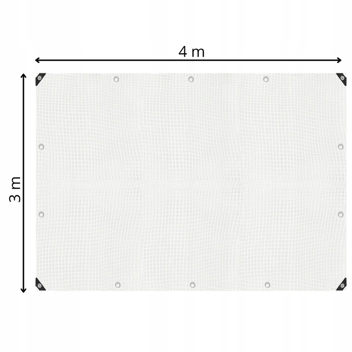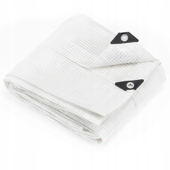 Montajul este simplu datorita ochiurilor metalice pozitionate la distanta de aproximativ 1 metru, astfel incat prelata poate fi prinsa usor cu sfoara, carlige sau elastice. Finisajul alb transparent permite patrunderea luminii, fiind util in diverse aplicatii gospodaresti sau comerciale unde este necesara protectie fara a crea un spatiu complet opac.