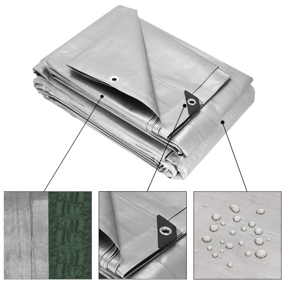 Datorita dimensiunii de 5x4 m, poate fi folosita pentru acoperirea lemnelor, mobilierului de gradina, materialelor de constructii, remorcilor, echipamentelor sau altor bunuri care trebuie ferite de umezeala. Ochiurile metalice din aluminiu permit o prindere usoara si sigura, iar colturile intarite contribuie la o utilizare mai stabila.