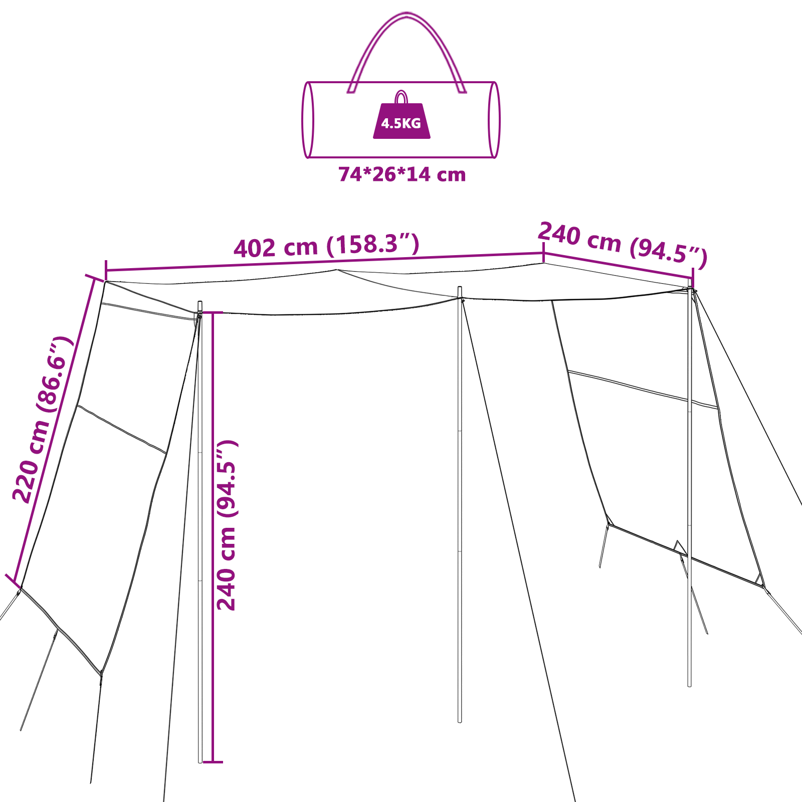 • Conținutul livrării: 1 x Prelată, 2 x stâlp (220 cm), 1 x stâlp (230 cm), 3 x frânghie (400 cm),