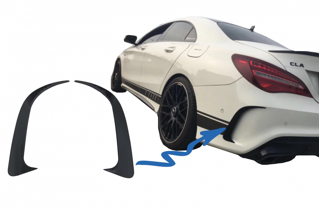 Oferă un plus de stil și agresivitate părții din spate cu aceste prelungiri bara spate Mercedes CLA W117, create în design CLA45 pentru un aspect sportiv, elegant și bine integrat. Realizate din plastic ABS rezistent, cu finisaj negru lucios, extensiile sunt pregătite pentru montaj fără vopsire și completează perfect liniile dinamice ale modelului CLA.