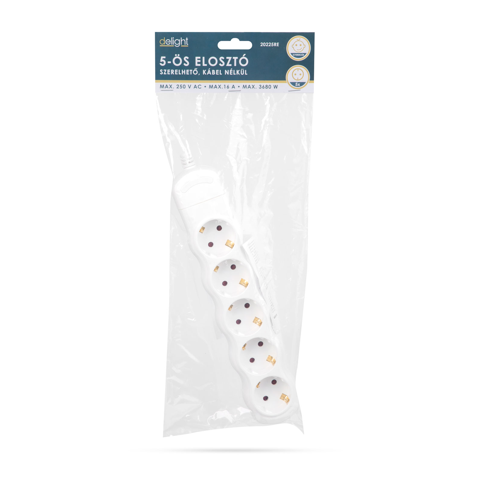 Prelungitor clasic, alb, cu 5 prize cu protecție pentru copii. Poate fi dezasamblatpentru montarea cablului.