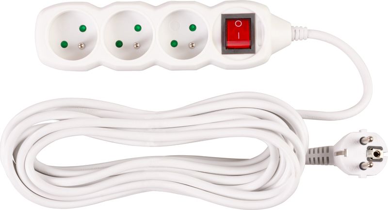 Prelungitor electric 7 m cu 3 prize si intrerupator, alb Strend Pro