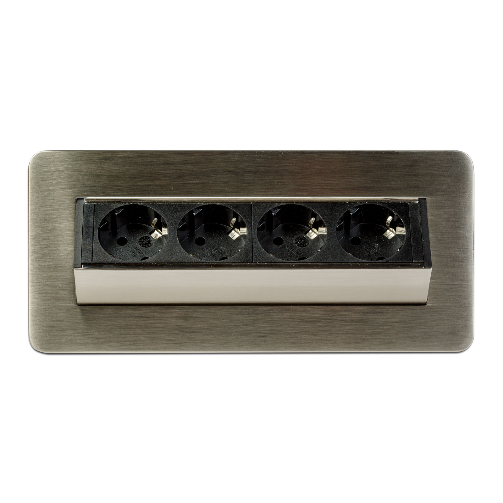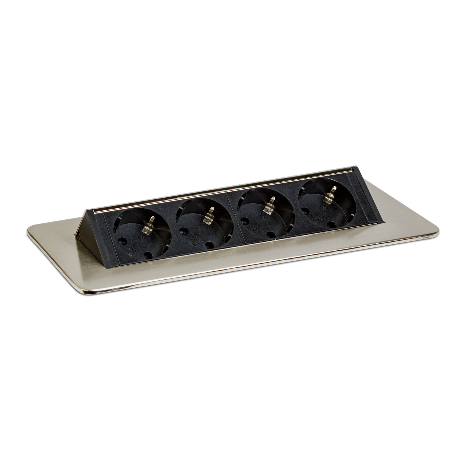 Prelungitor încastrat – 4 prize – tip „flip-up” – finisaj metalic satinat (șlefuit) Best CarHome