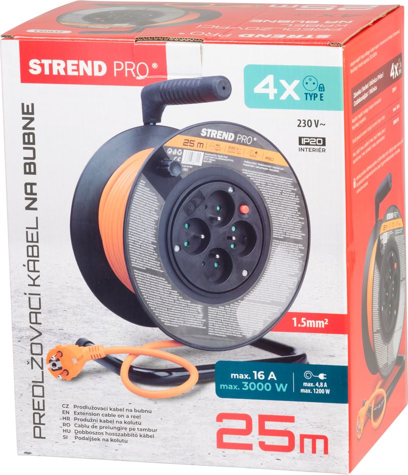 Prelungitor pe tambur Strend Pro DG-FB04, 25 m, 4 prize, 3x1,5 mm²