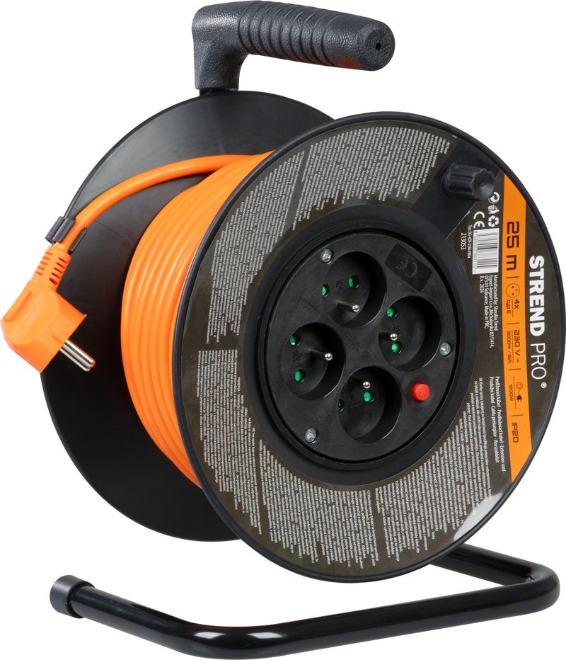 Prelungitorul pe tambur Strend Pro DG-FB04, cu cablu portocaliu de 25 m, este soluția practică atunci când ai nevoie de curent la distanță, în casă, garaj, curte sau grădină. Tamburul cu mâner îl face ușor de transportat și de depozitat, iar cele 4 prize 230 V îți permit să alimentezi mai multe echipamente în același timp.