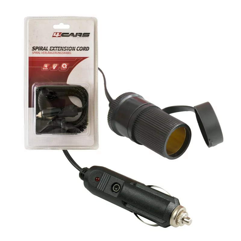 Prelungitor priza bricheta auto 4 m, 12-24V, cablu spiralat 4Cars