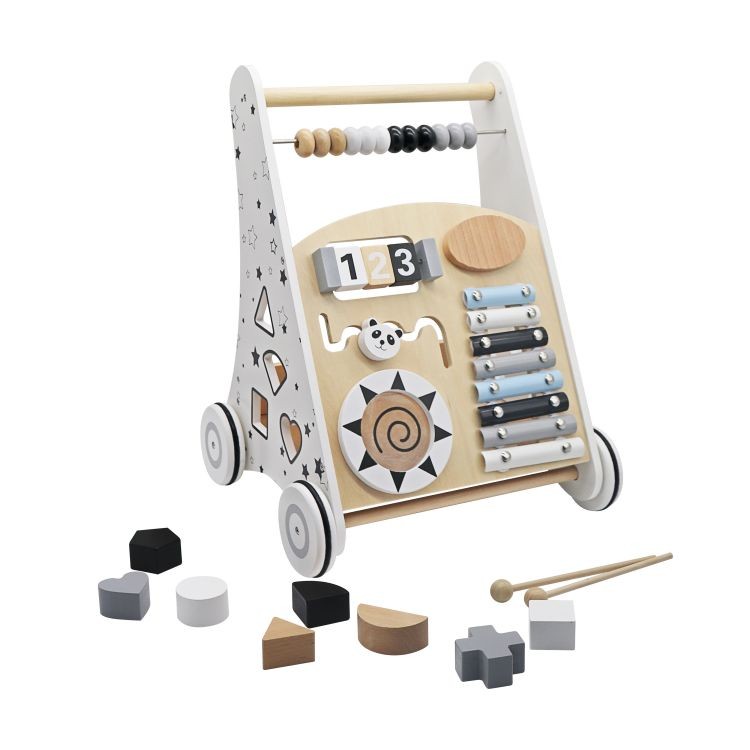 Premergatorul multifunctional este un produs ideal pentru dezvoltarea abilitatilor motrice si cognitive ale copiilor mici. Construit din lemn durabil si prietenos cu mediul, acest premergator ofera multiple activitati educative, precum un xilofon pentru dezvoltarea simtului muzical, un sortator de forme pentru stimularea coordonarii mana-ochi si un labirint captivant pentru antrenarea dexteritatii. De asemenea, include un spatiu de depozitare practic, ideal pentru a transporta jucariile preferate ale copilului.