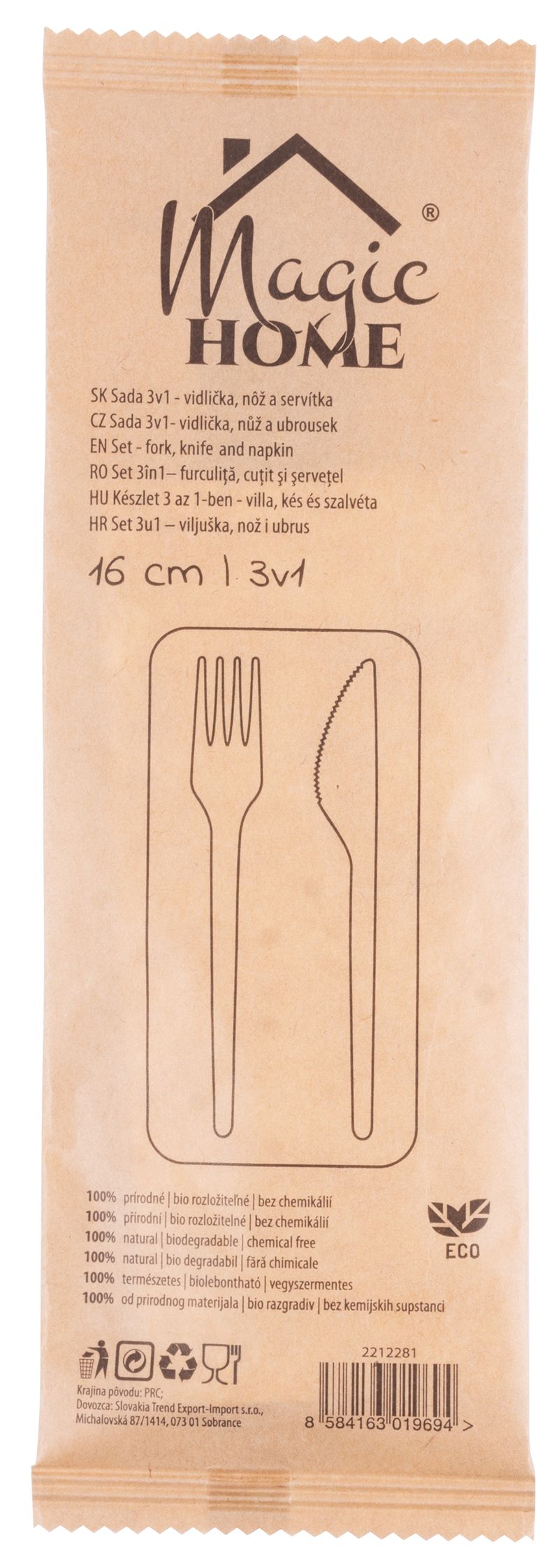 Príbor MagicHome Woodline ECO, drevený, nôž, vidlička, servítka, 100% Natural