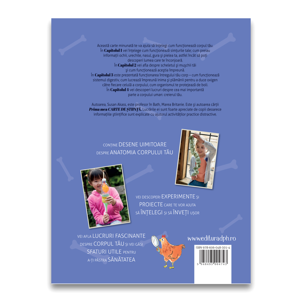 DESPRE AUTORI:Susan Acass este profesor in Bath, Marea Britanie. Este si autoarea cartii Prima mea carte despre corpul uman. Lucrarile ei sunt foarte apreciate de copii deoarece informatiile stiintifice sunt explicate cu ajutorul activitatilor practice distractive.Frances Butcher este medic si urmeaza cursuri de specialitate in medicina sanatatii publice. De asemenea, locuieste in Oxford, Marea Britanie, si este absolventa de stiinte Globale in Sanatate la Universitatea din Oxford.