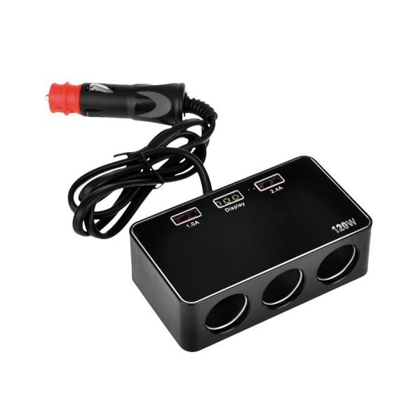 Bricheta cu trei cai cu USB. Priza pentru bricheta permite conectarea mai multor aparate la o priza standard pentru bricheta din masina.