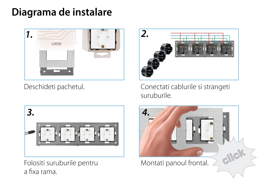 Specificatii Priza Cvadrupla LUXION rama aluminiu SmartElectro