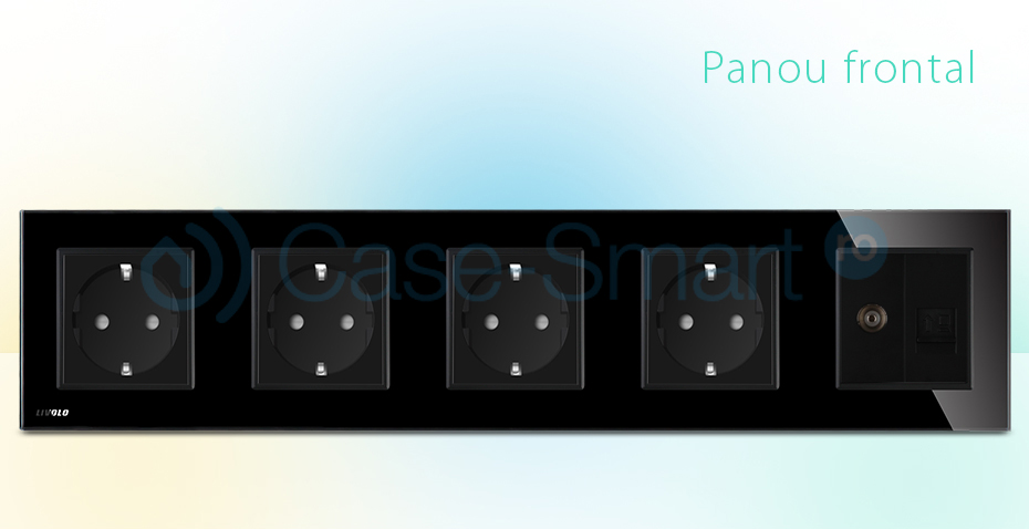 Priza cvintupla + priza TV Internet Livolo cu rama din sticla SmartElectro IntelligentHouse